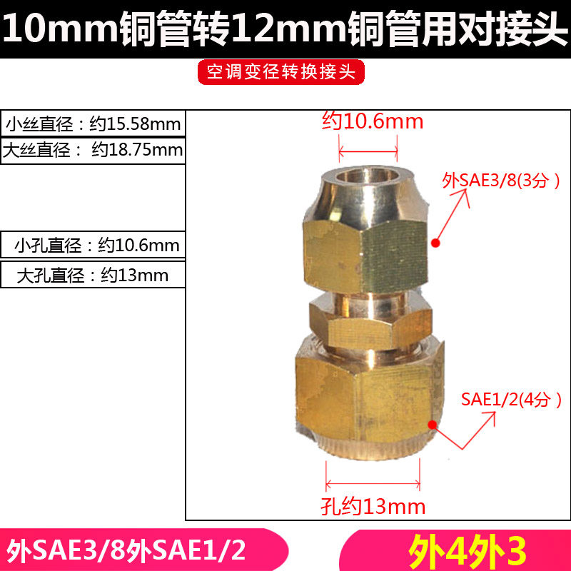 Different diameter butt joint connected to thin tube variable diameter 16 to 19 size head air conditioning copper tube double connection 6mm to 8 to 10 to 12