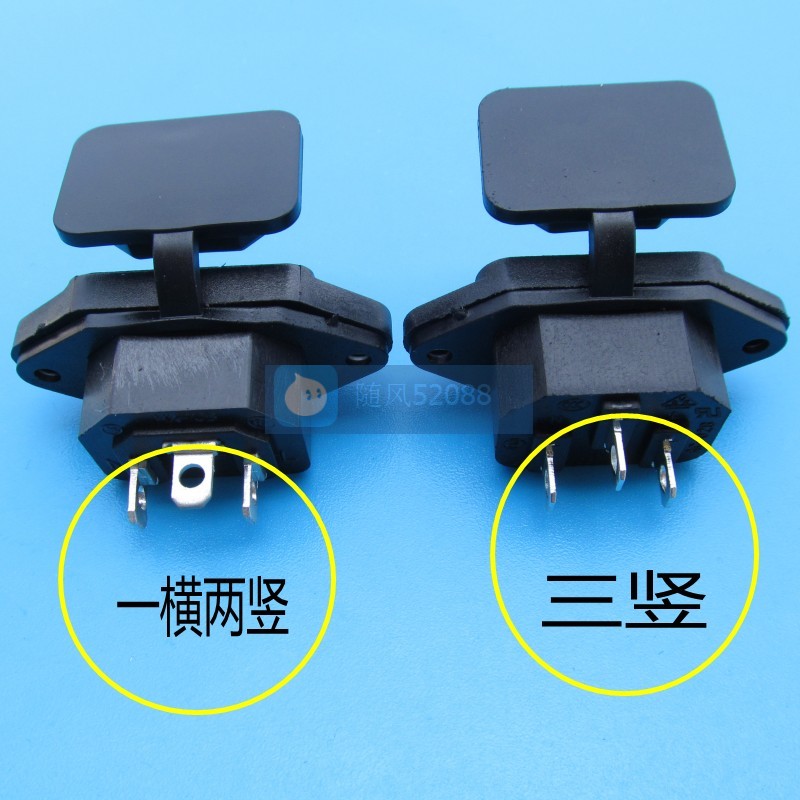 Electric vehicle charging socket with cover, charging head connection seat, 3 vertical, 1 horizontal and 2 vertical, rubber cover for the character seat