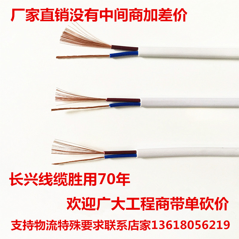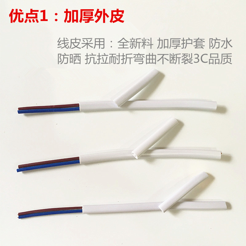 Pure copper power cord RVV2 core 0 50 751 01 5 square white sheath monitoring power cord LED light line
