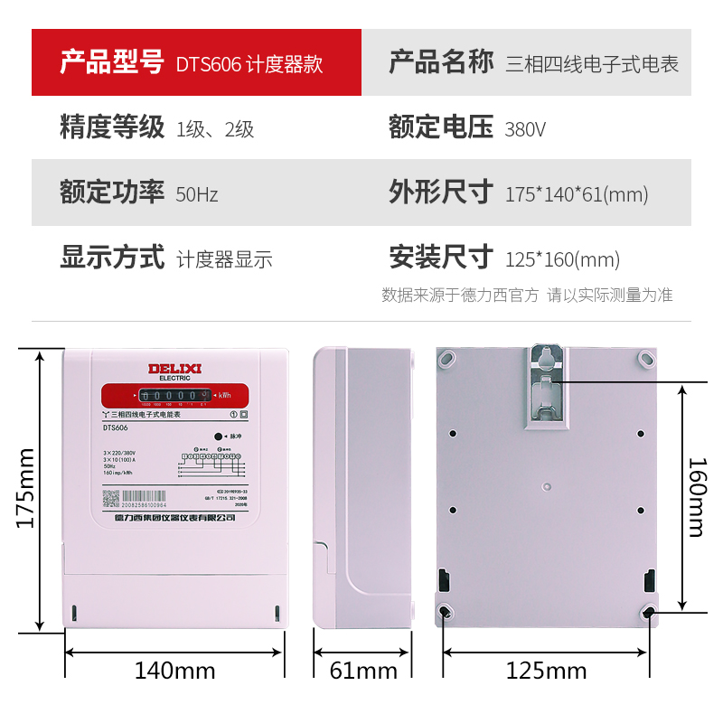 Delixi electronic three-phase four-wire electric meter 380V electric meter fire meter electric energy meter DTS606 20A 40A