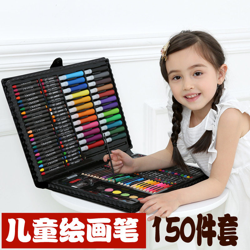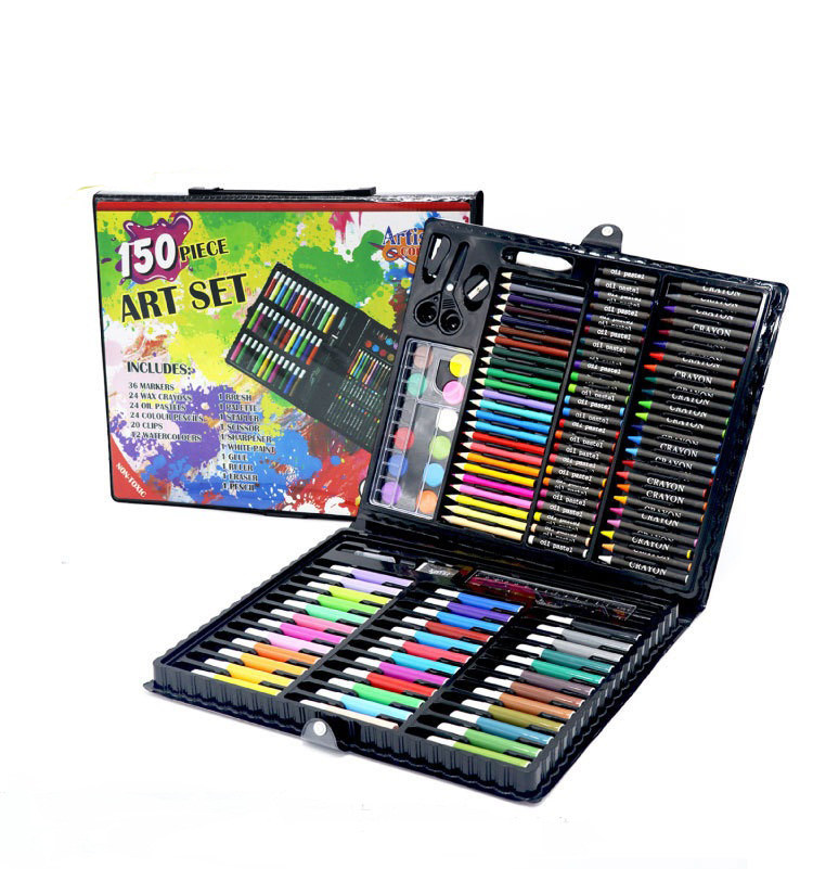 150 Pieces Sets Stationery Suit Water Color Pen Suit Painting Suit Wax Pen Color Pencil Children Drawing Tools