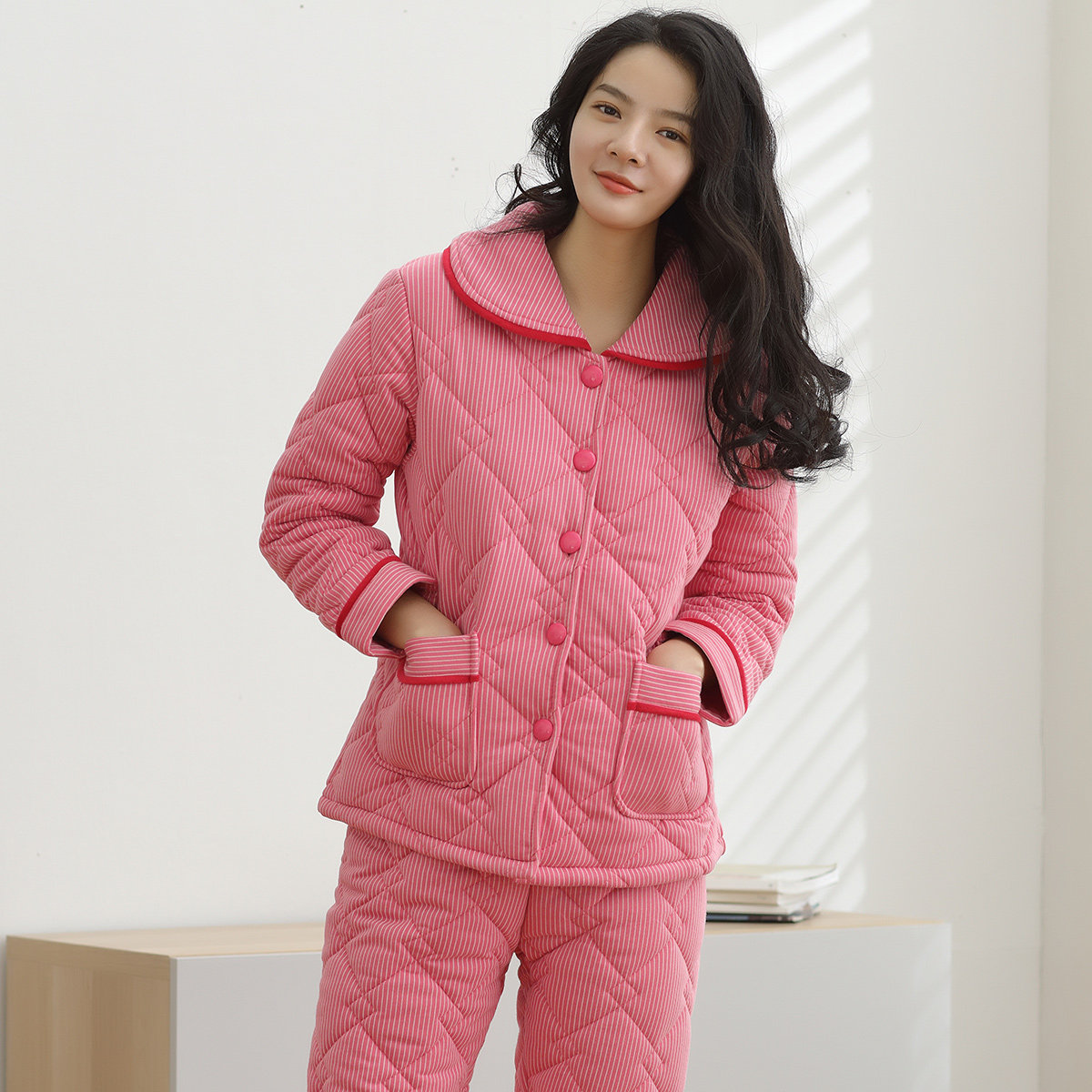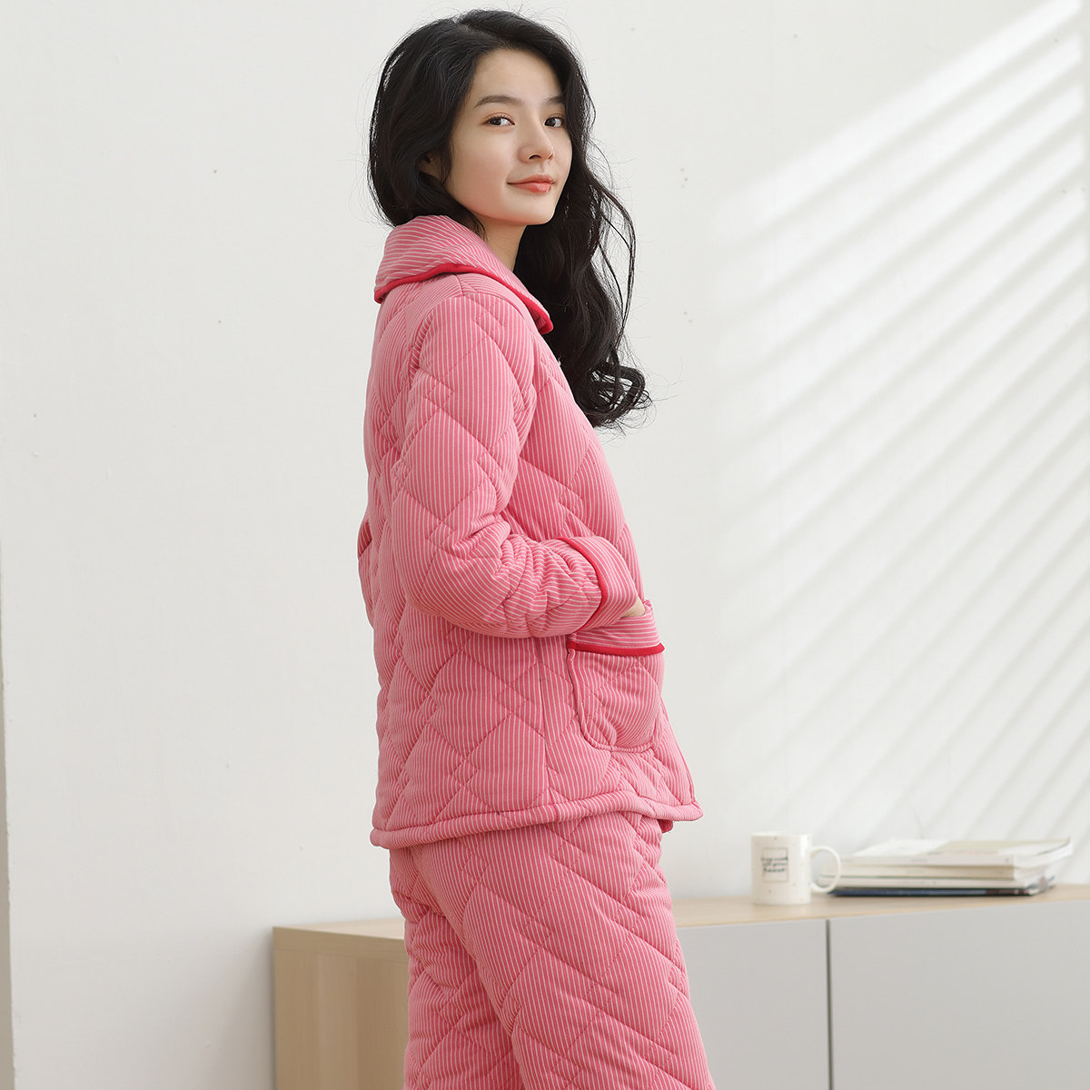 More beautiful Korean version of cotton padded women's pajamas set autumn and winter winter cotton padded warm home clothing