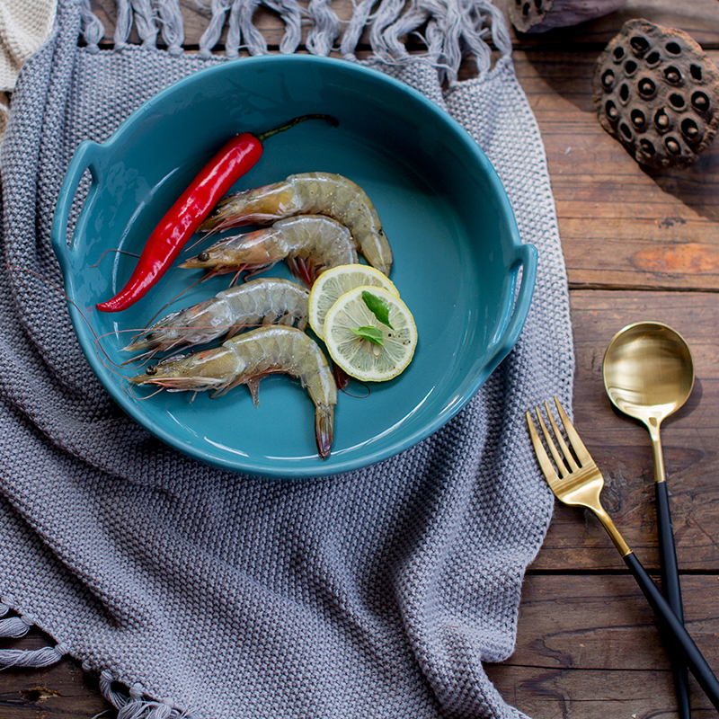 Day-style ceramic large number Bowl Double Ear Dinner Plate Baking Tray Soup Noodle Bowl of Sour Fish Water Cooking Fish Bowls Public Lobster Big Dish Chicken