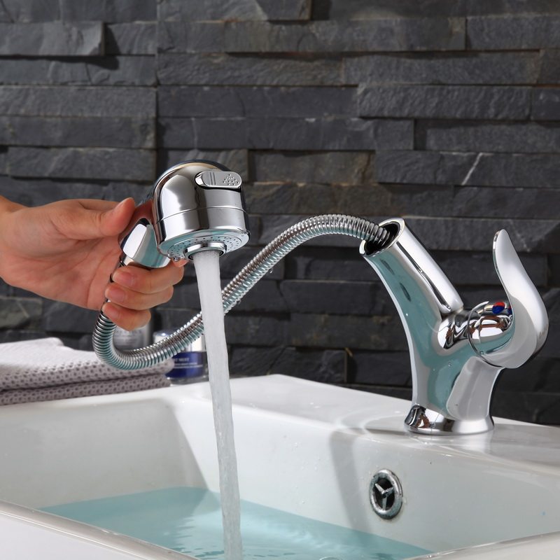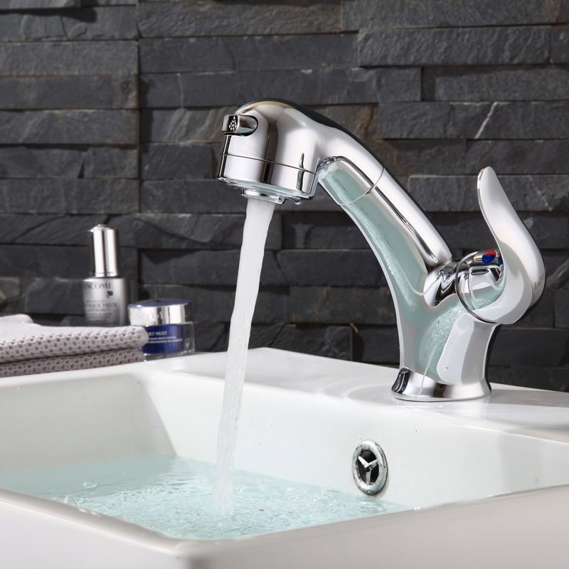 Wenjie bathroom pull-out faucet cold and hot basin faucet under-counter basin single-hole washbasin basin pull-out faucet
