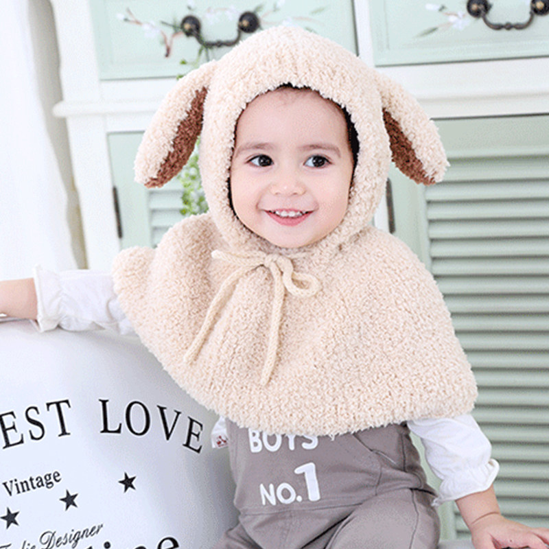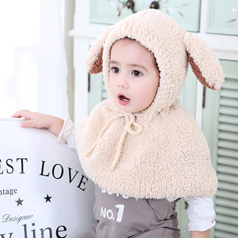 Korean baby girl hat one-piece hat autumn and winter plush hat plus Velvet girl cute baby toddler ear cap Princess