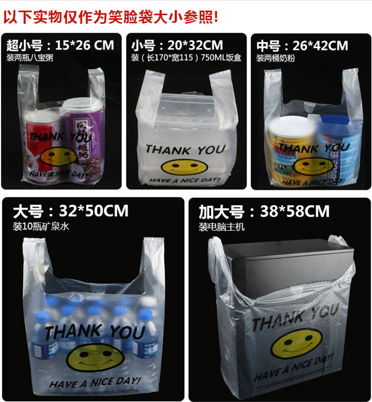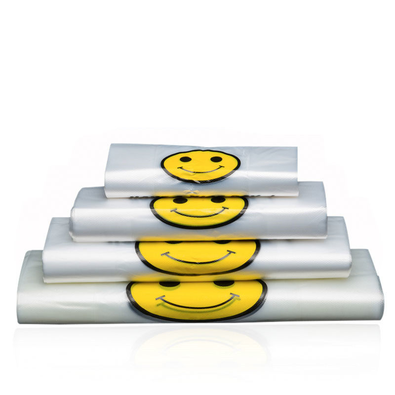 Transparent Thickened Smiley Face Supermarket Shopping Bag Convenience Vest Packaging Bags Food Hand Plastic Bags Wholesale