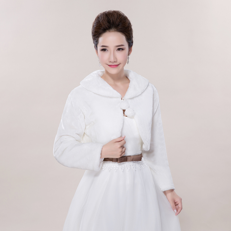 Bride wedding hairy shawl bridesmaid dress small jacket wedding ceremony white long sleeve short cotton coat red warm Special