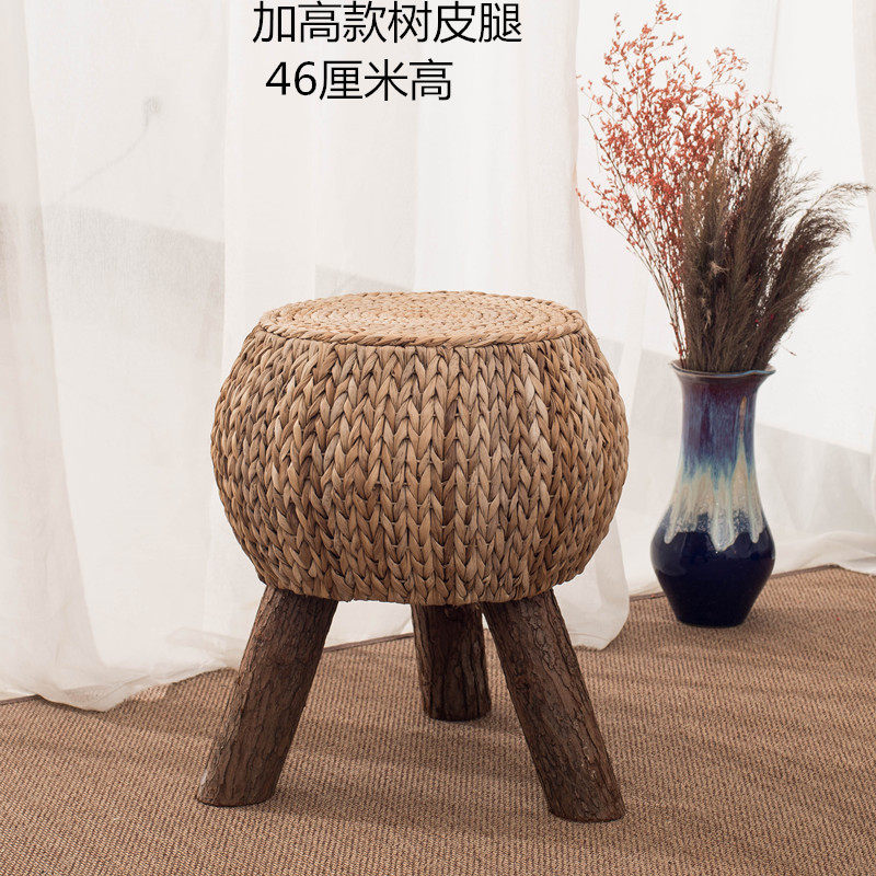 Rattan low stool Round stool Small stool Straw furniture Tatami chair Leisure living room seat pier Garden pier stool