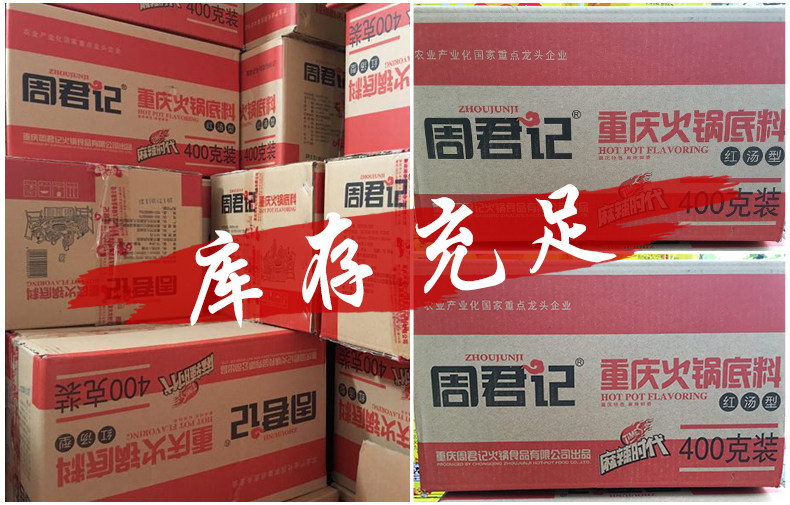 Chongqing specialty Zhou Junji hot pot bottom material 400g*30 bags whole box of spicy hot pot skewers fragrant butter old hot pot