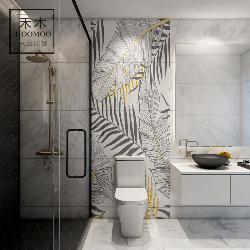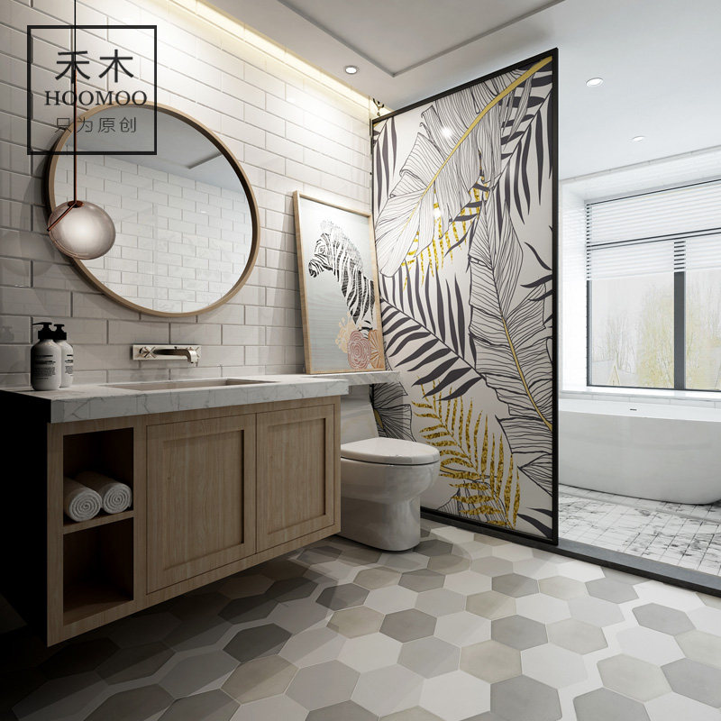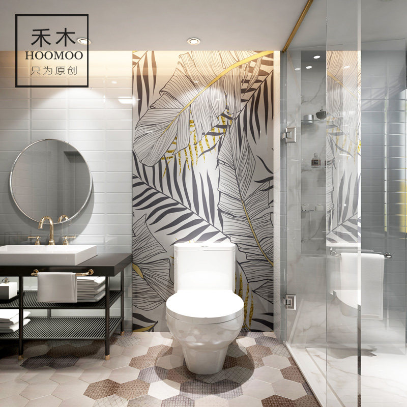 Wo Muk Makeup Room Tiles Modern Nordic Bathroom Toilet toilet Toilet Background Wall Brick Pattern Tropical Plants