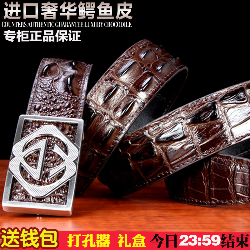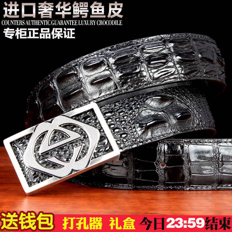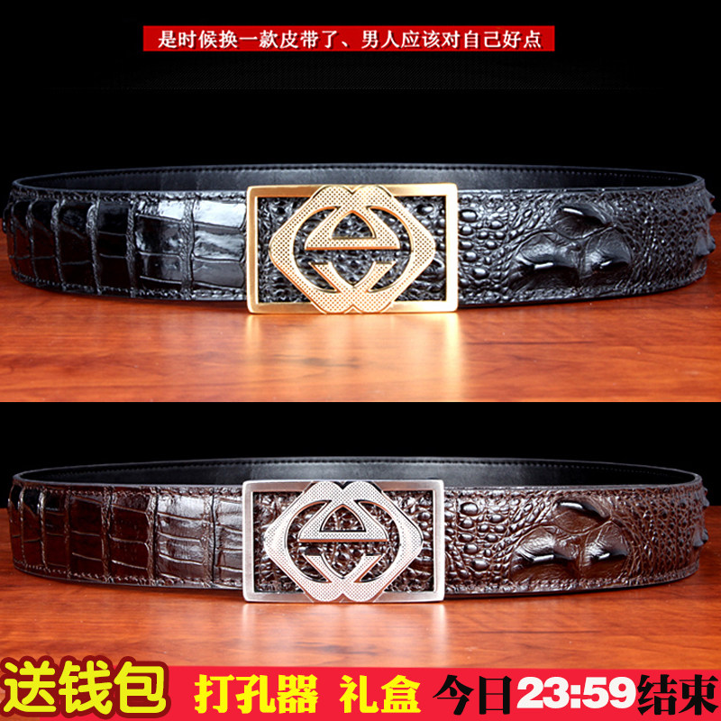 Thailand crocodile leather belt men's leather youth business smooth buckle men's belt casual fashion belt