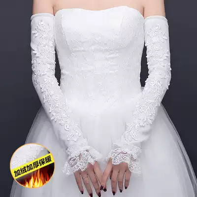 Wedding gloves Long version lace winter thin hand sleeve Bridal gloves Wedding accessories extended warm stretch Korean version