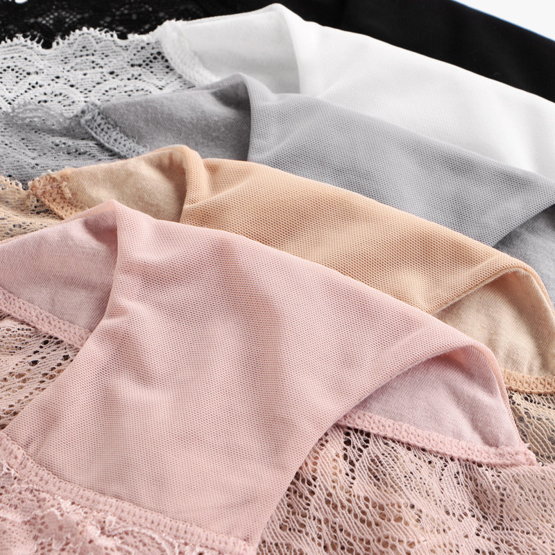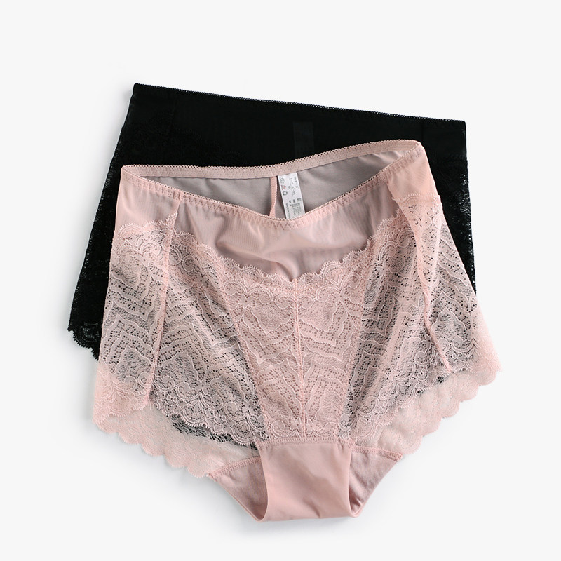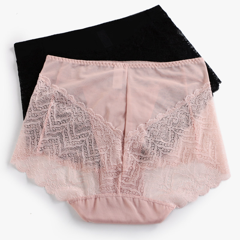 3 Sexy Hollowed-out High Waist Briefs Female Lace Pure Cotton Crotch No Marks Big Size Transparent Mesh Yarn Triangular Pants Head Thin