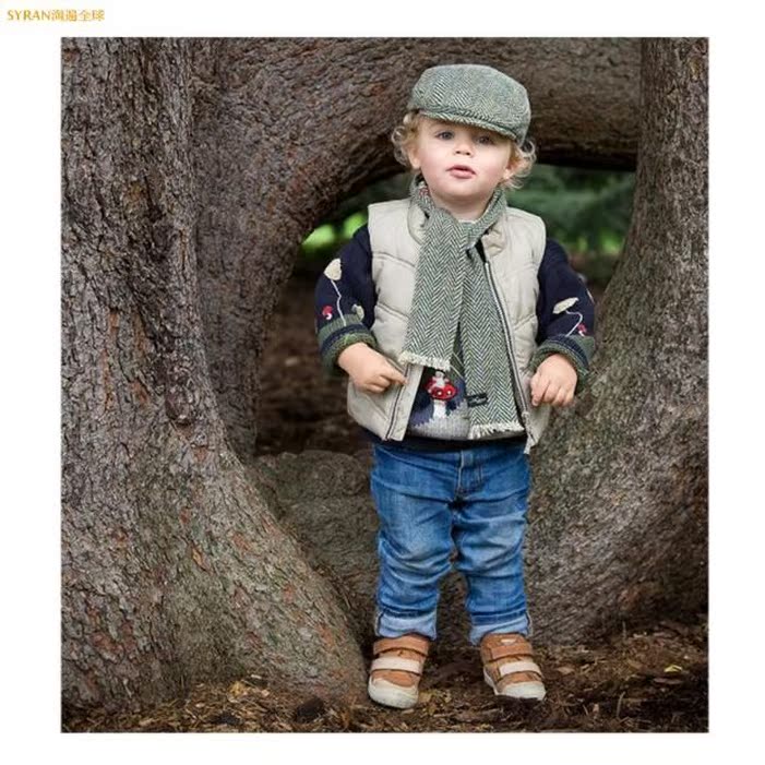 UK production of imported Artimus London children berets green sheep plush scarves 2 pieces 1-3-5 years old