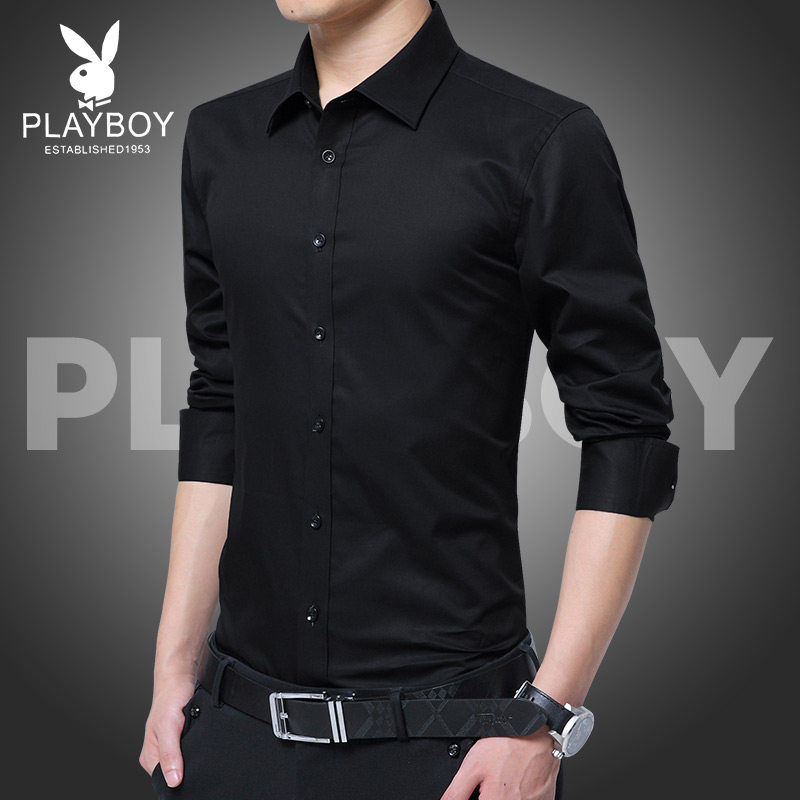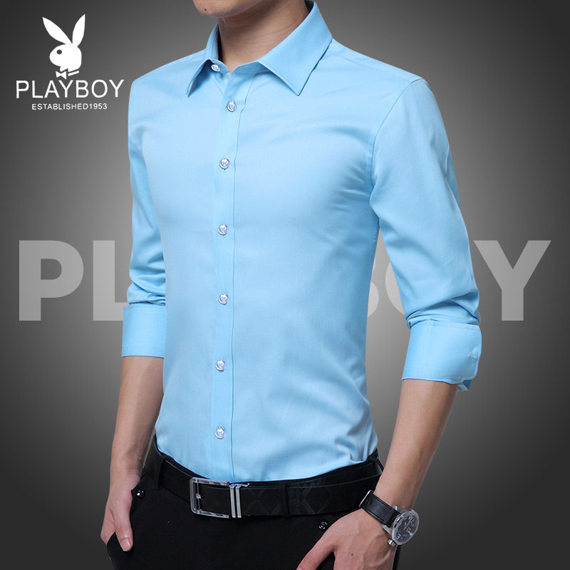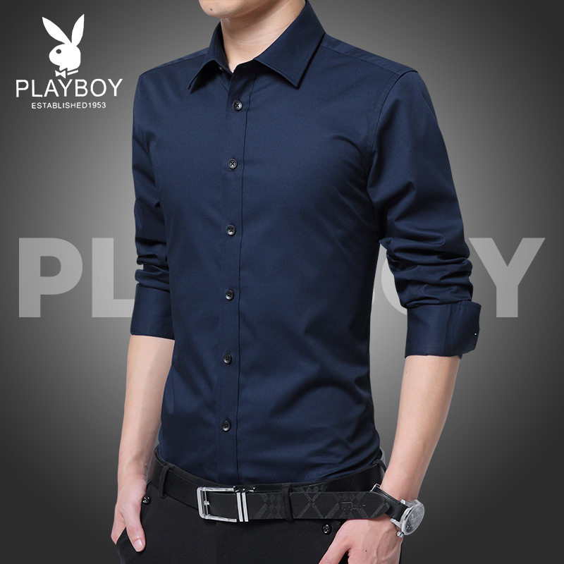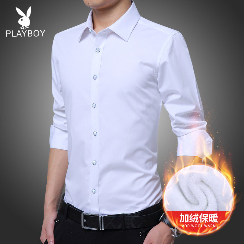 Playboy men's long-sleeved shirt autumn business casual iron-free shirt youth warm plus velvet slim-fit shirt