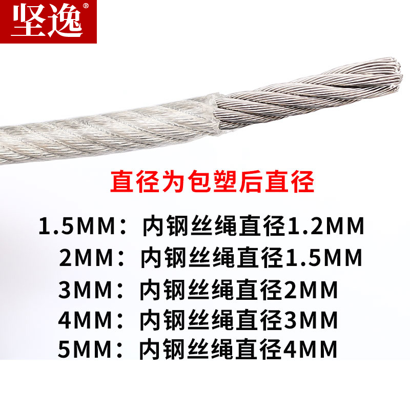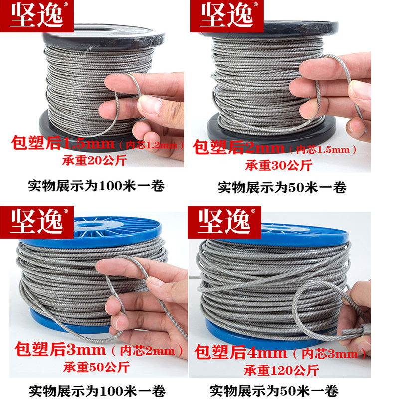 Steel wire rope packed plastic clothing rope soft 304 stainless steel drying rope 1 5 2 3 4 5 6 8mm
