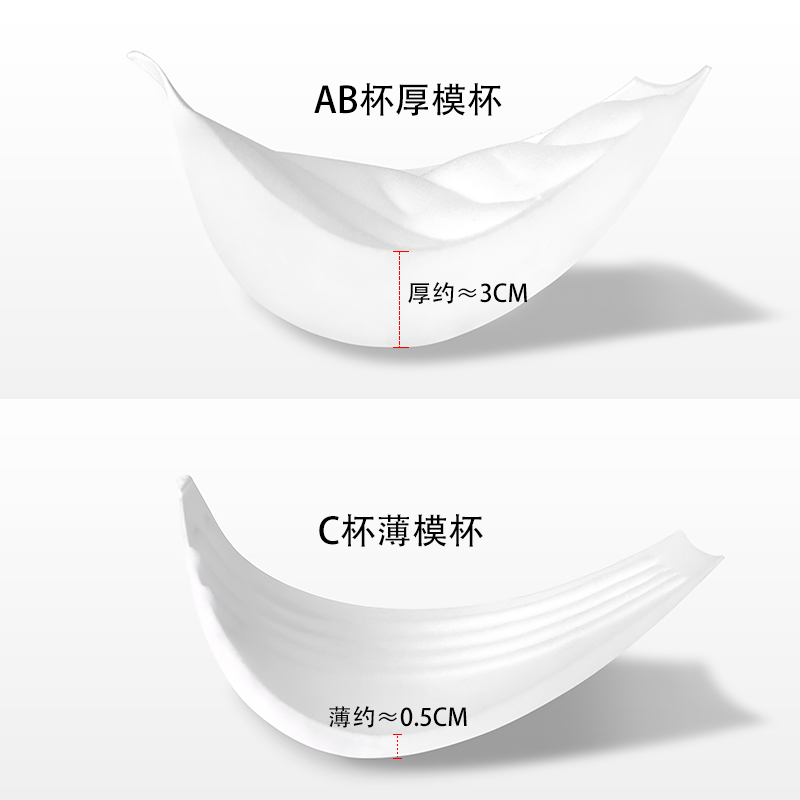 The AB Cup is a thin upper and lower thick mold cup. The C cup is a thin mold Cup.