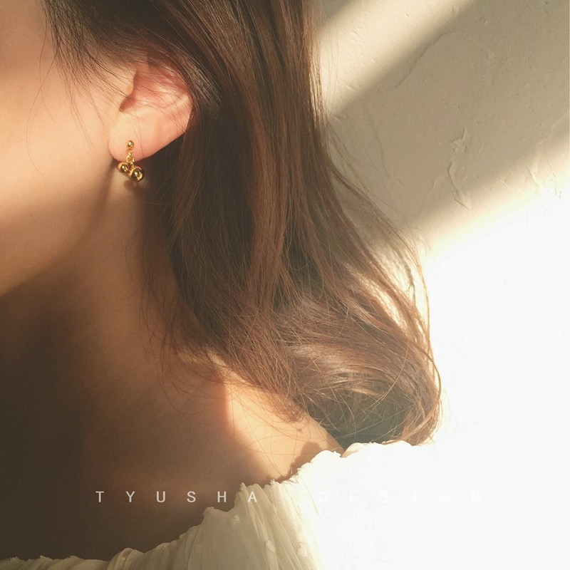 TYUSHA Beauty Products 14k Bag Gold Earshot Woman Temperament Korean Personality 2020 Super Fire Little Lucky Gold Ball Bean Earrings