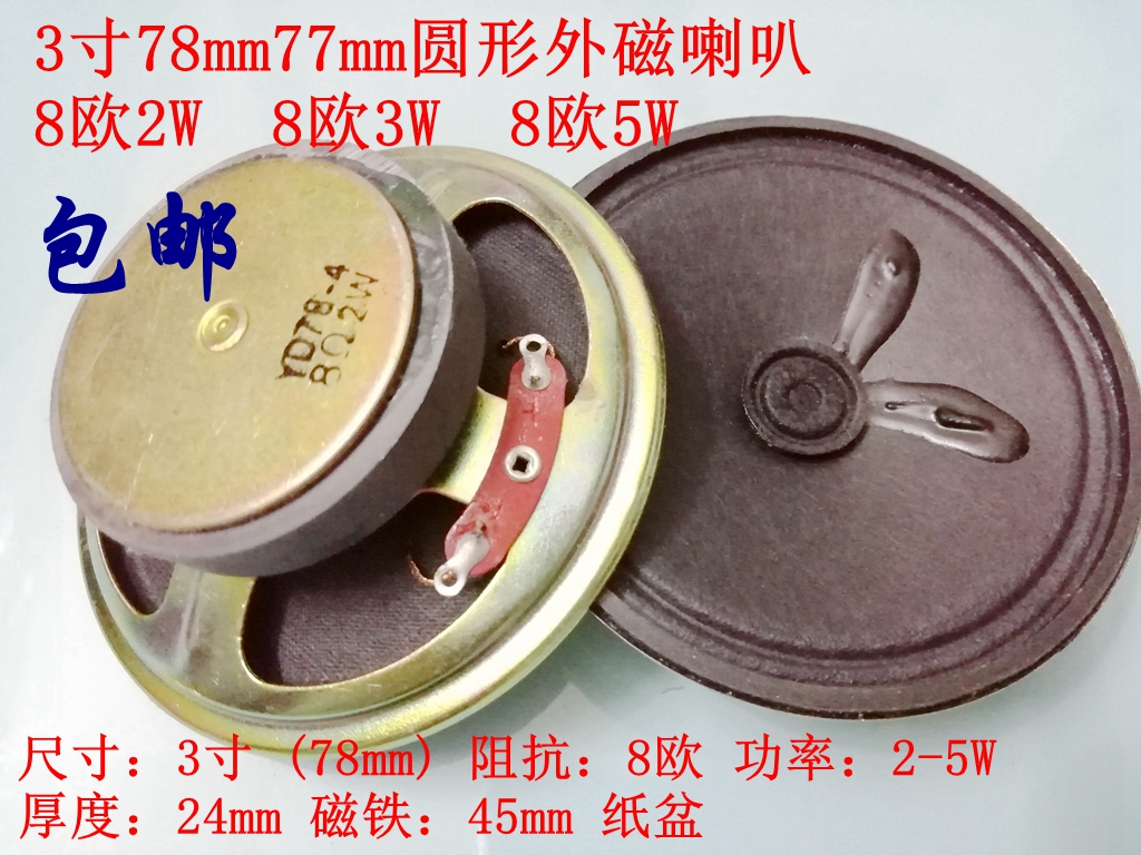 3-inch 78mm77mm round external magnetic 8 Euro 2W3W5W radio megaphone speaker sound speaker