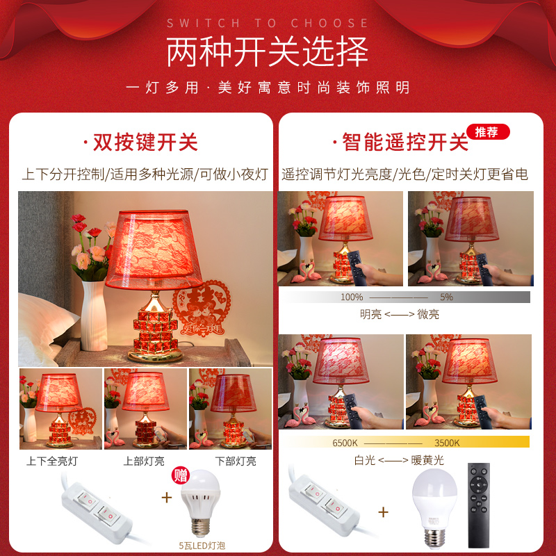 Wedding table lamp Wedding room bed lamp Bedroom newlywed long life lamp Festive red bride dowry lamp A pair of gifts