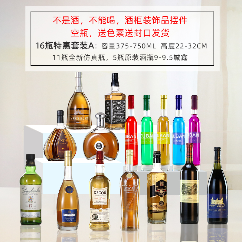 Decorative wine bottle wine cabinet decoration wine simulation props wine creative glass empty wine bottle collection wine photography XO wine