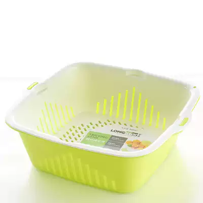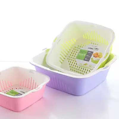 Double wash basket drain basket wash vegetable drain basin filter blue plastic pan pan kitchen household wash fruit plate
