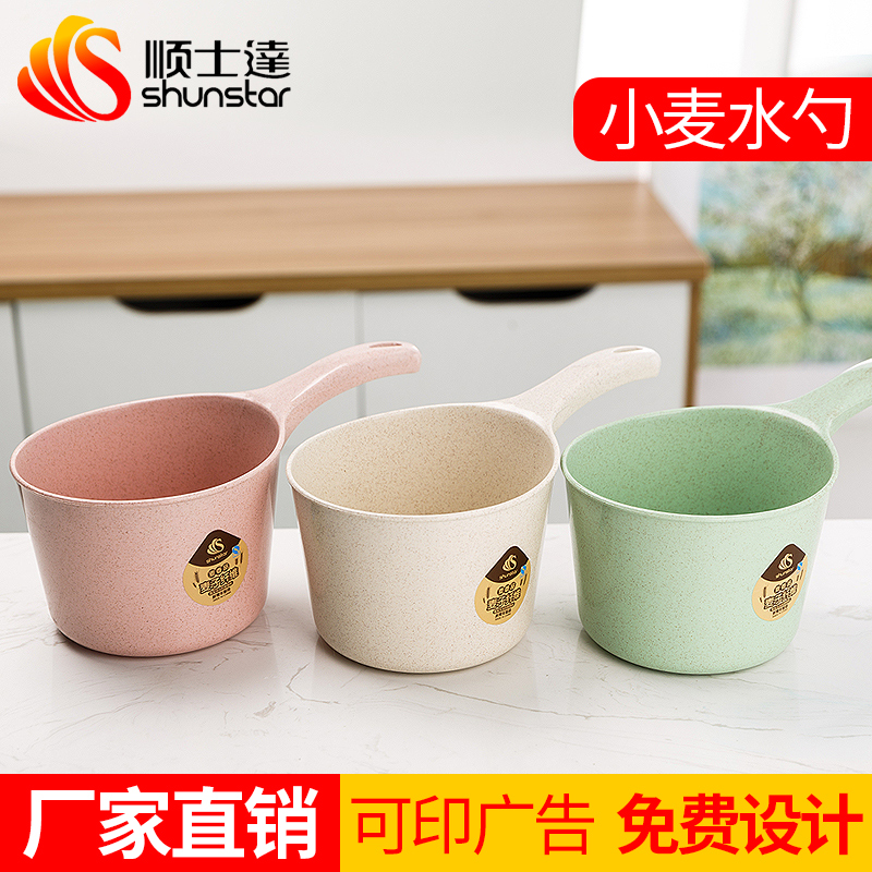 Wheat straw water scoop Plastic household water scoop thickened water scoop Baby bath water scoop Kitchen hanging bath spoon