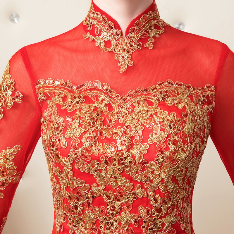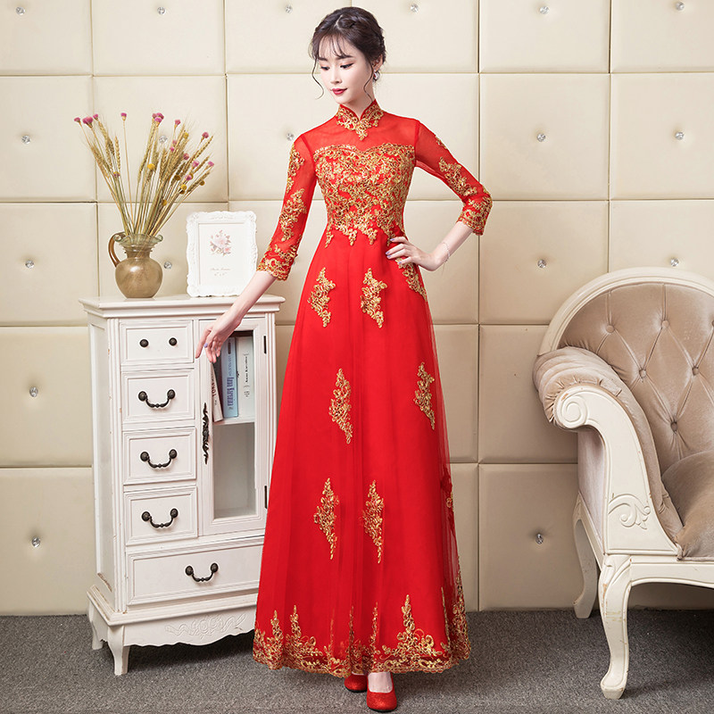 Bride to toast 2021 new wedding gown red evening gown woman pregnant woman Long version of Korean version Lace Dress