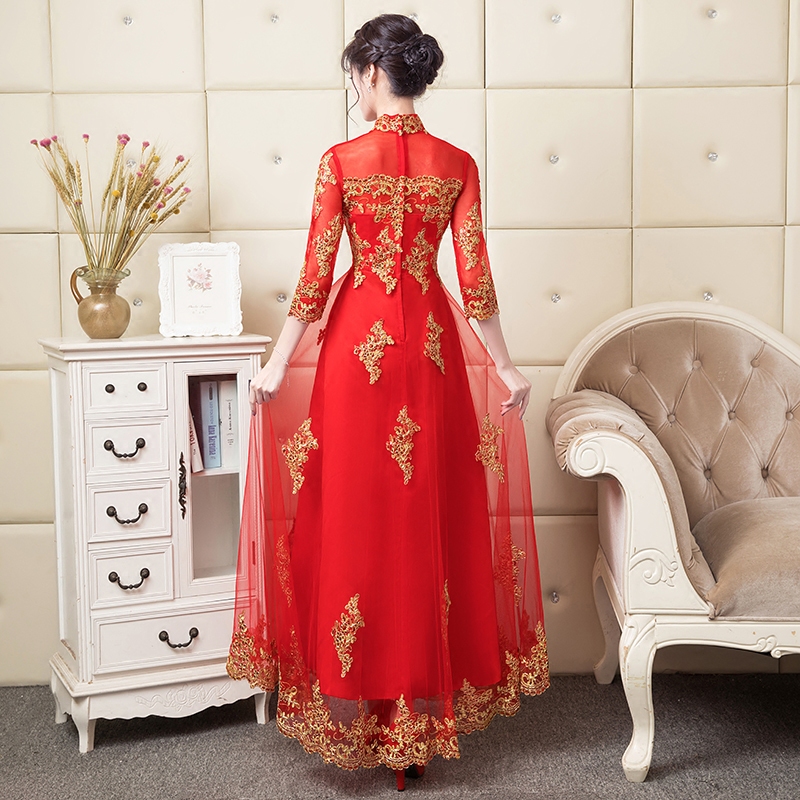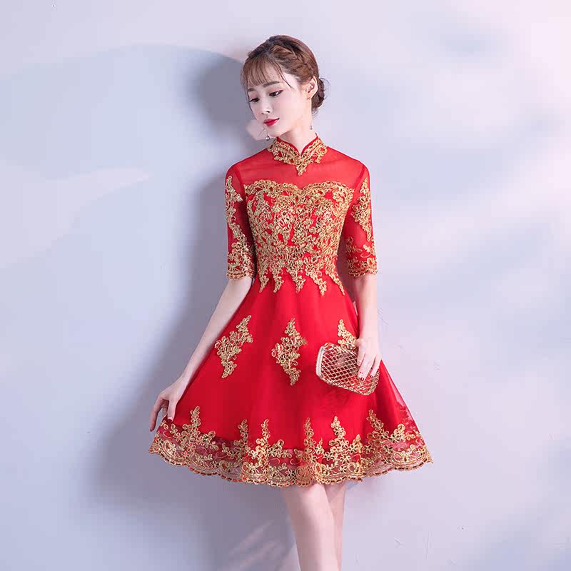 Red (9-sleeve long dress) red (5-sleeve short dress)