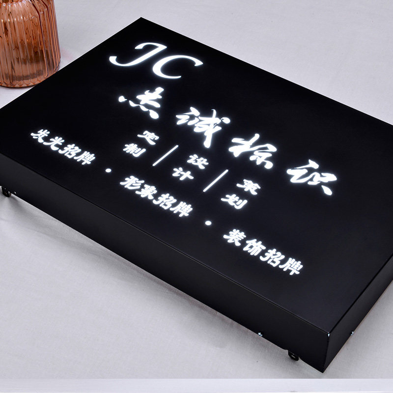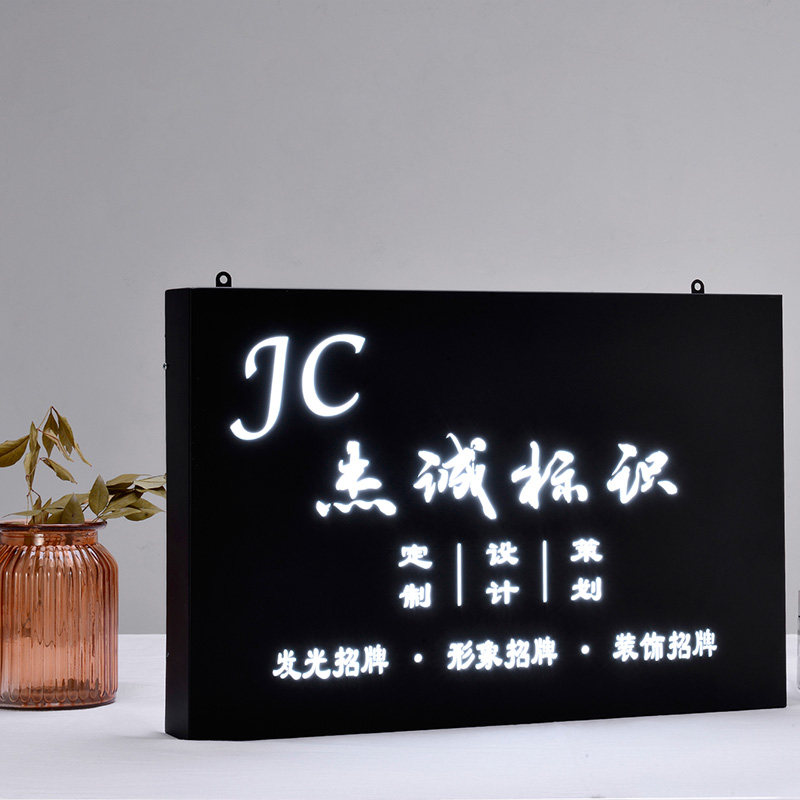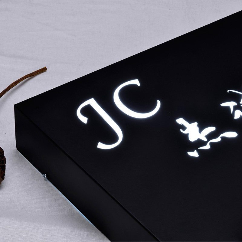Personality stainless steel hollow LED luminous light box door head signboard company Door creative light box customization