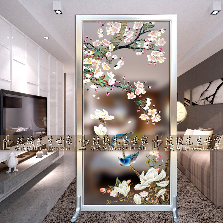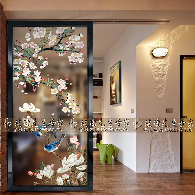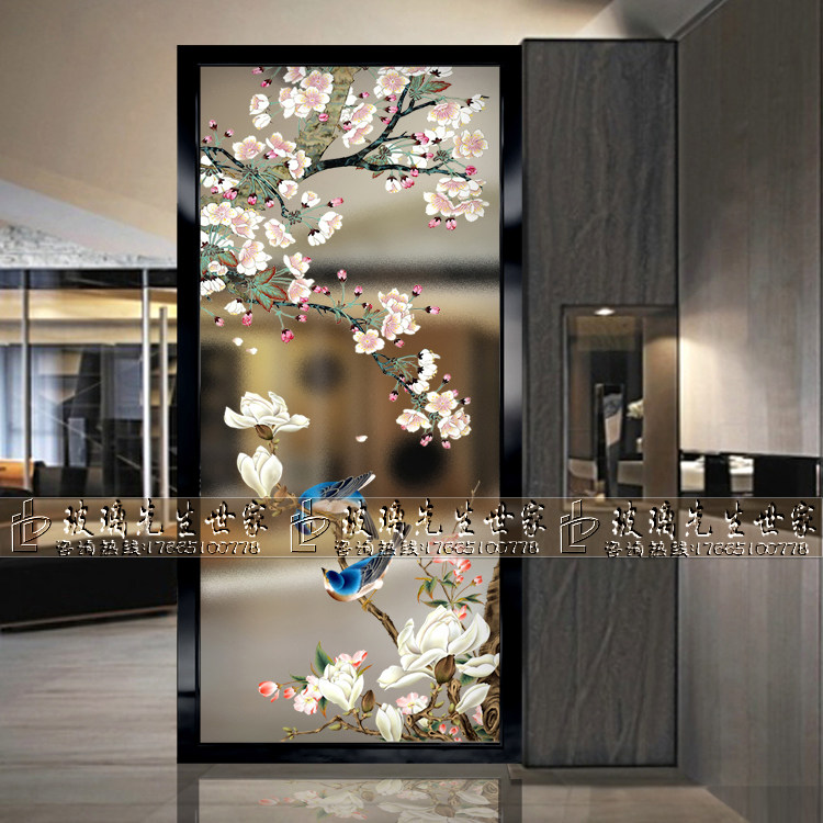 Custom craft art glass background wall partition screen porch modern simple matte light transmission simple European magpie