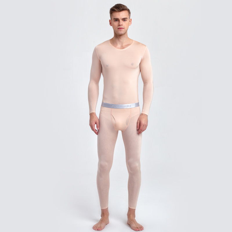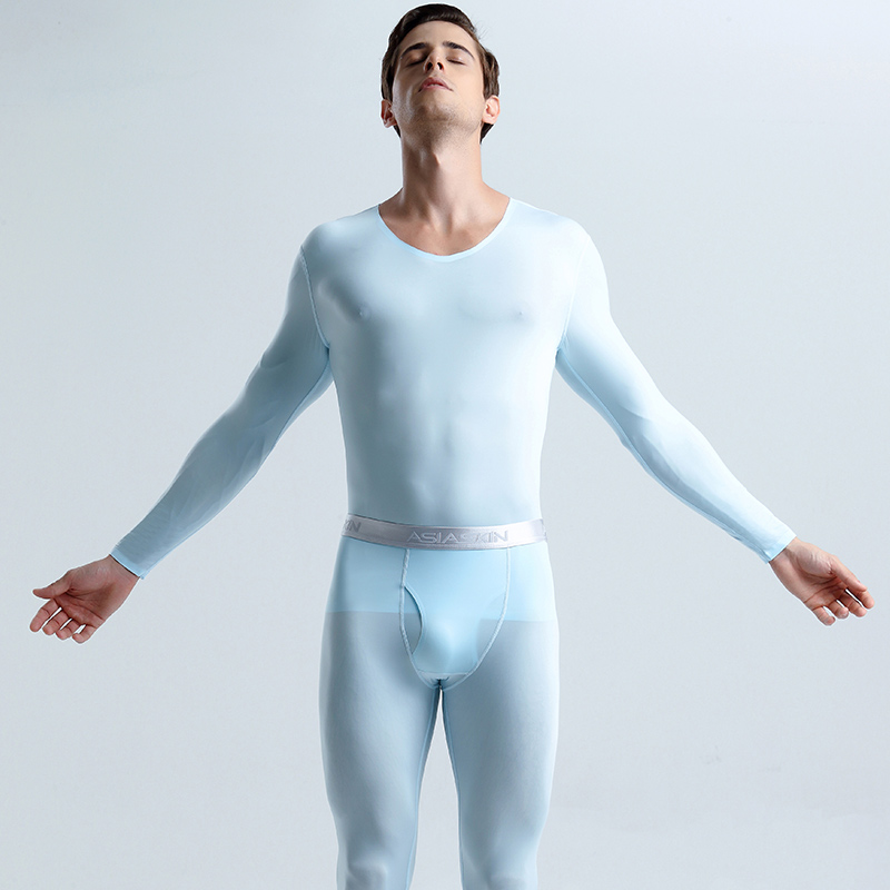 Ultra-thin Slide Men Ice Wire Trace Urine Autumn Clothes Sexy-tide Men's Long-sleeved Pants Lingerie