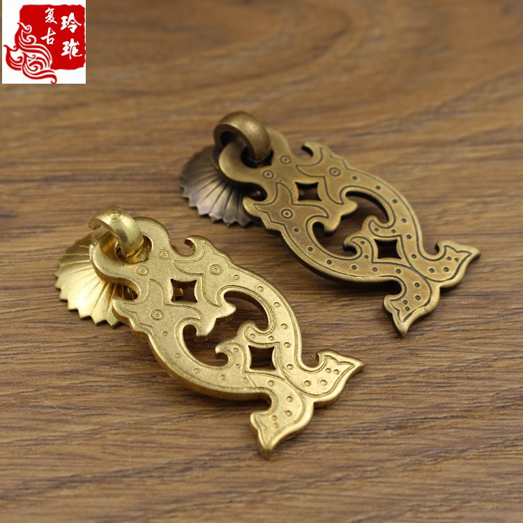 Chinese style furniture antique bronze handle double fish-shaped pure copper small handle drawer cabinet door hanging handle five gold accessories
