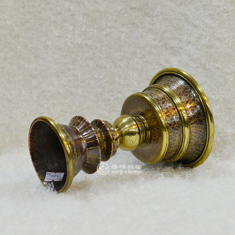 Tantric Buddhist supplies Nepalese pure copper hand-carved gilt butter lamp holder candlestick for lamp high-footed Buddha lamp
