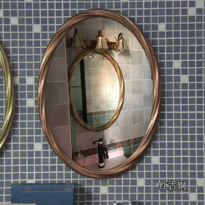 American retro luxury bathroom mirror oval wall-mounted decorative mirror hotel dressing room basin mirror European toilet mirror