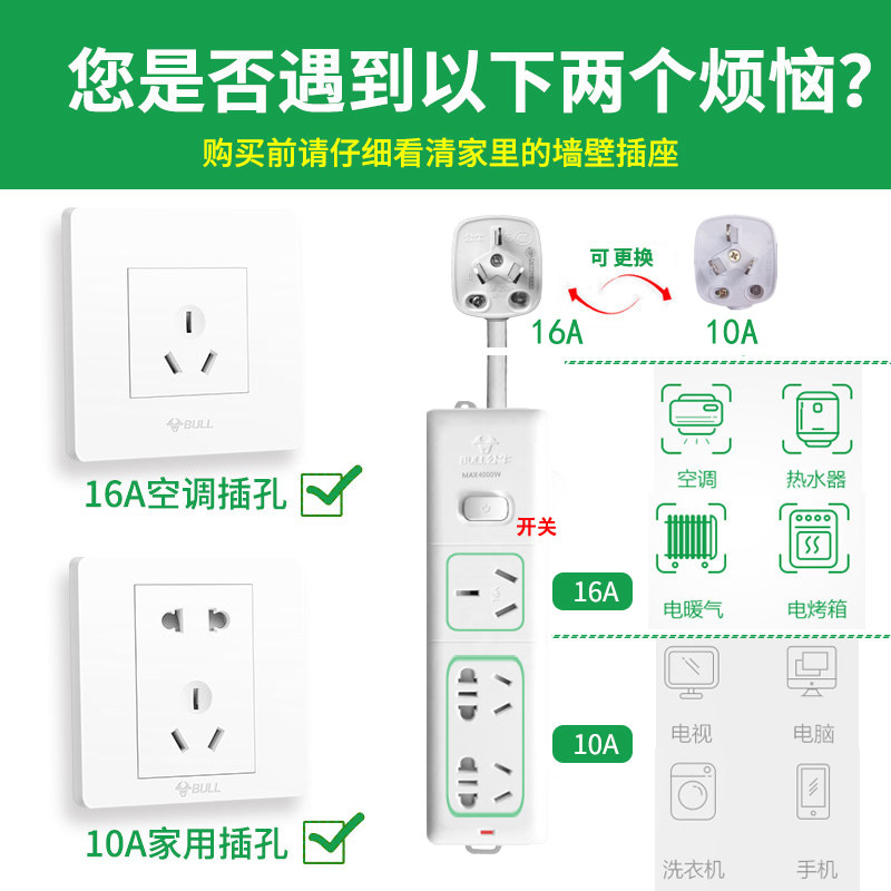 Bull 16A Turns 10A Extension Socket Conversion Plug Oil Tine Hot Water Student School Dormitory Air Conditioning Converter