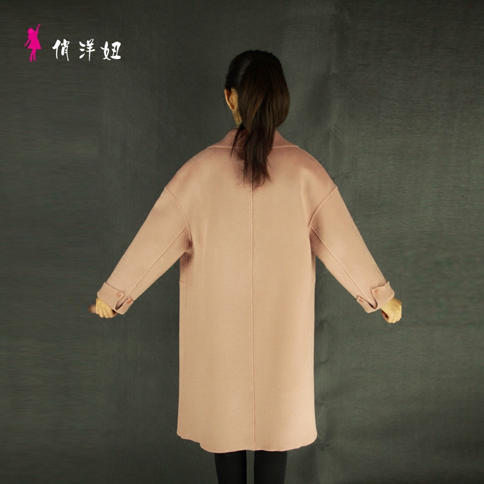 New Korean wave wide version drop shoulder medium and big girls small handmade double-sided cashmere wool coat factory direct sales