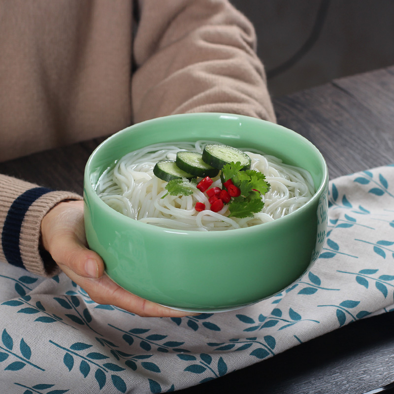 Celadon large soup noodle bowl Household ceramic instant noodle bowl Salad noodle porridge rice bowl Japanese creative dish bowl