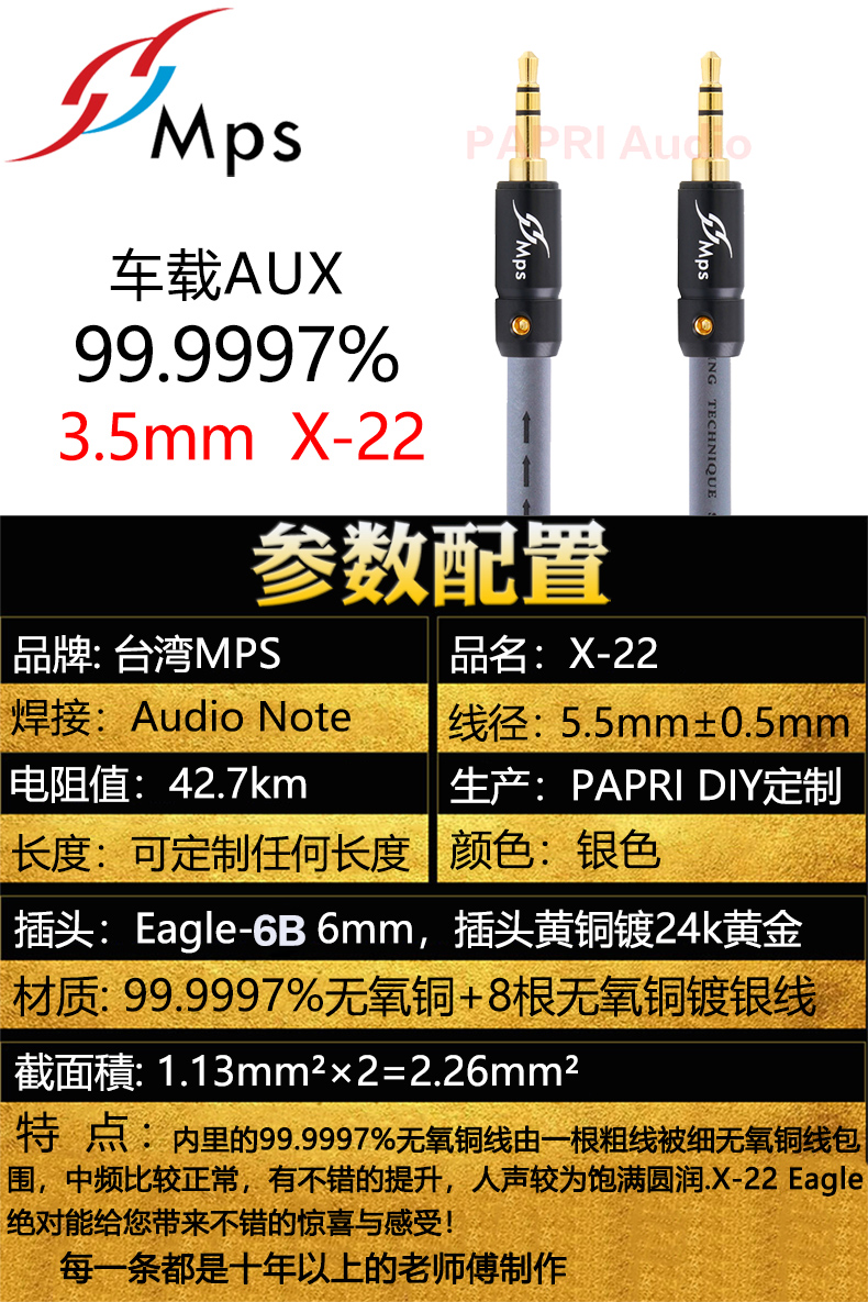 Taiwan MPS Imports X-22 Oxygen-free Copper Silver Plated Vehicle AUX Pair of recording lines 3 5MM pairs of recording wire headphones Upgrade line