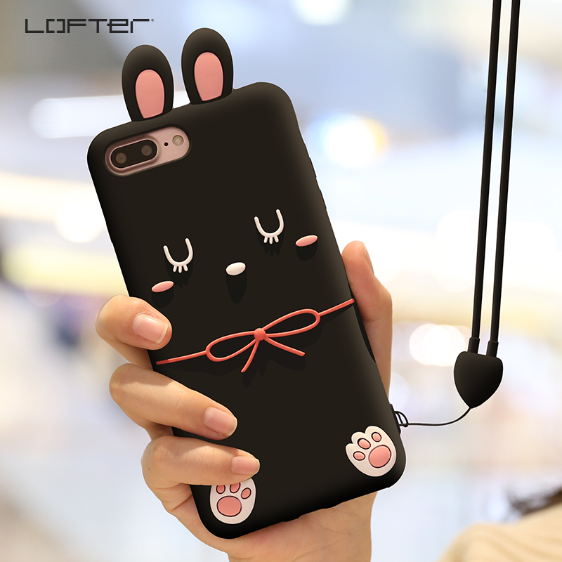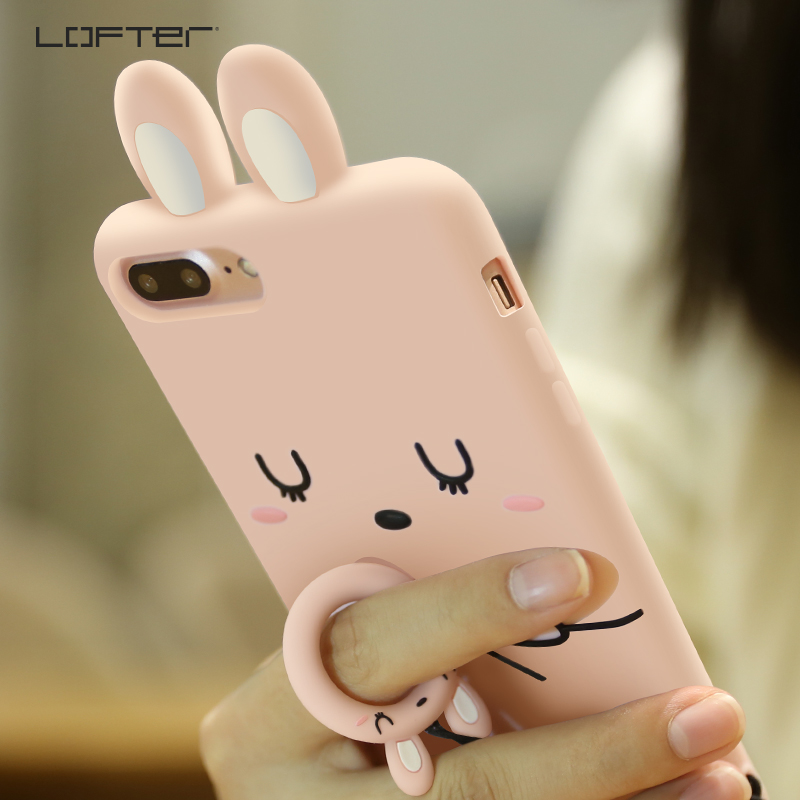 Loft is suitable for Apple 7plus mobile phone case iphone8 women's soft silicone 8plus cartoon cute girl lanyard 7p all-inclusive anti-drop iphone7 protective cover with ring