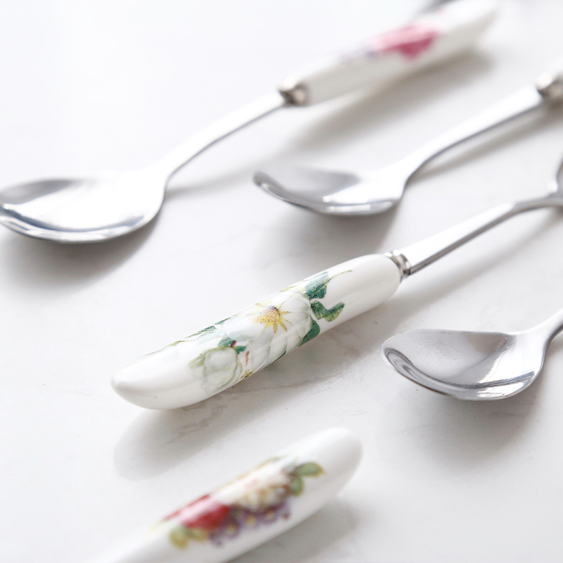 Tea Flowers Fairy Spoon Sailing Spoon Tuhao Golden Spoon Flowers Bird Spoon Classical Rose Spoon Josephine Queen Spoon Subposimi Blue Spoon Brief Sketch Golden Spoon Dream Blue Spoon White Grid Spoon Black Grid Spoon