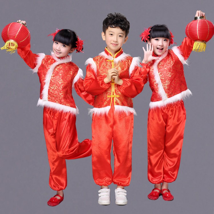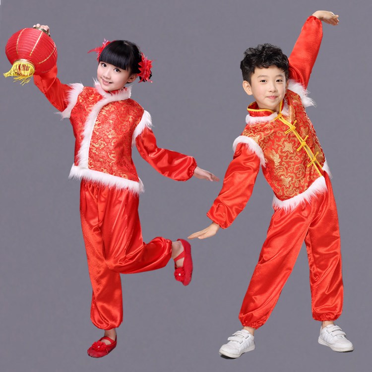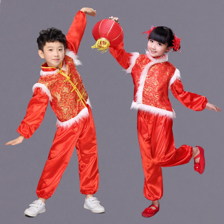 Young children's children's Spring Festival boy girl child's children's New Year's New Year's New Year's New Year's New Year's New Year's Eve red lantern dance costumes perform out