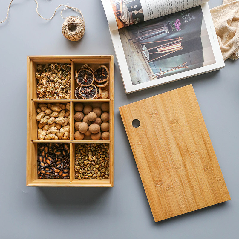 Sherry Day Style Living Room Bamboo Wood 4 6 G Fruit Pan Wedding Candy Box Melon Seeds Zero Food Dry Fruit Basin Containing Box