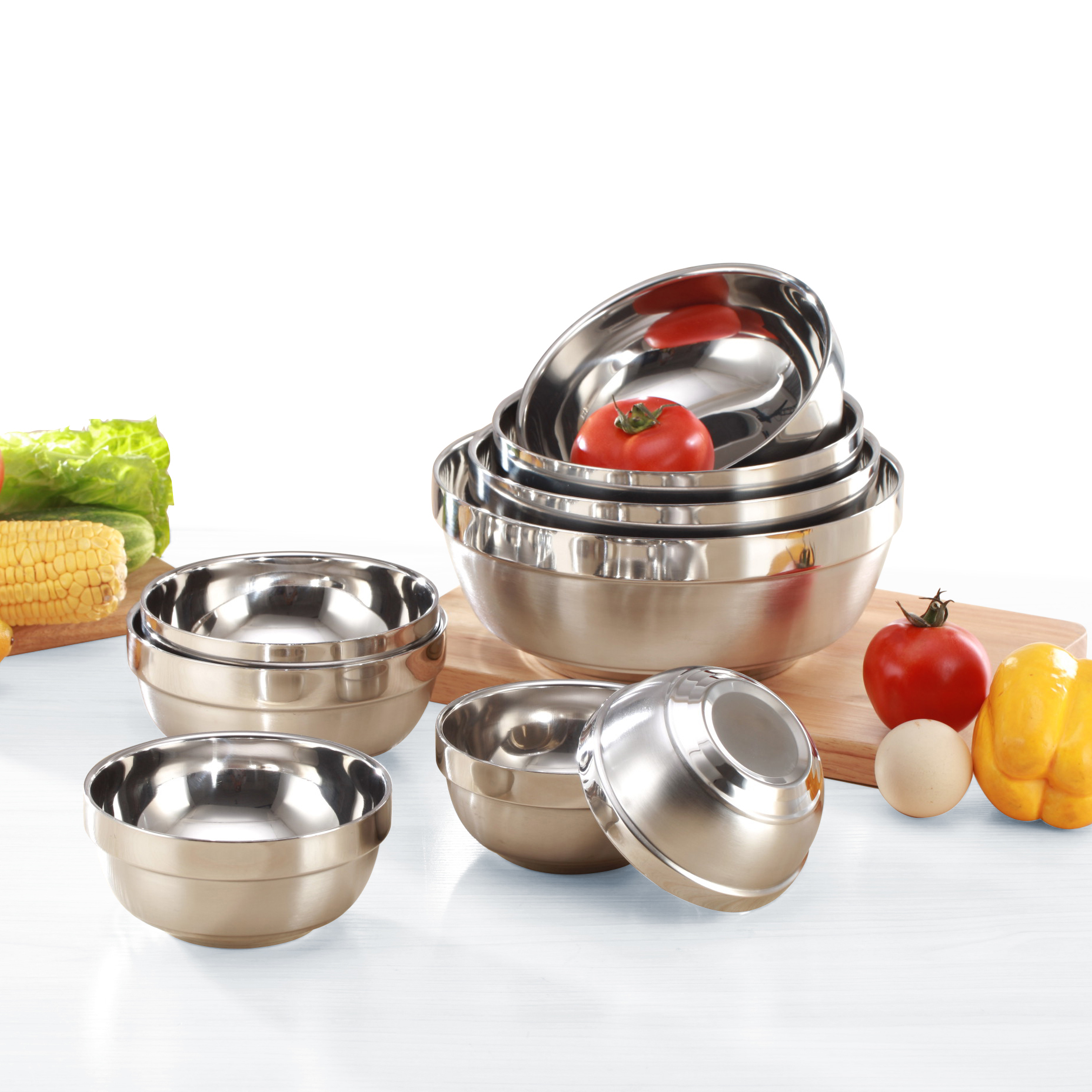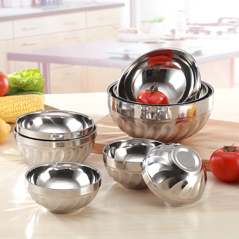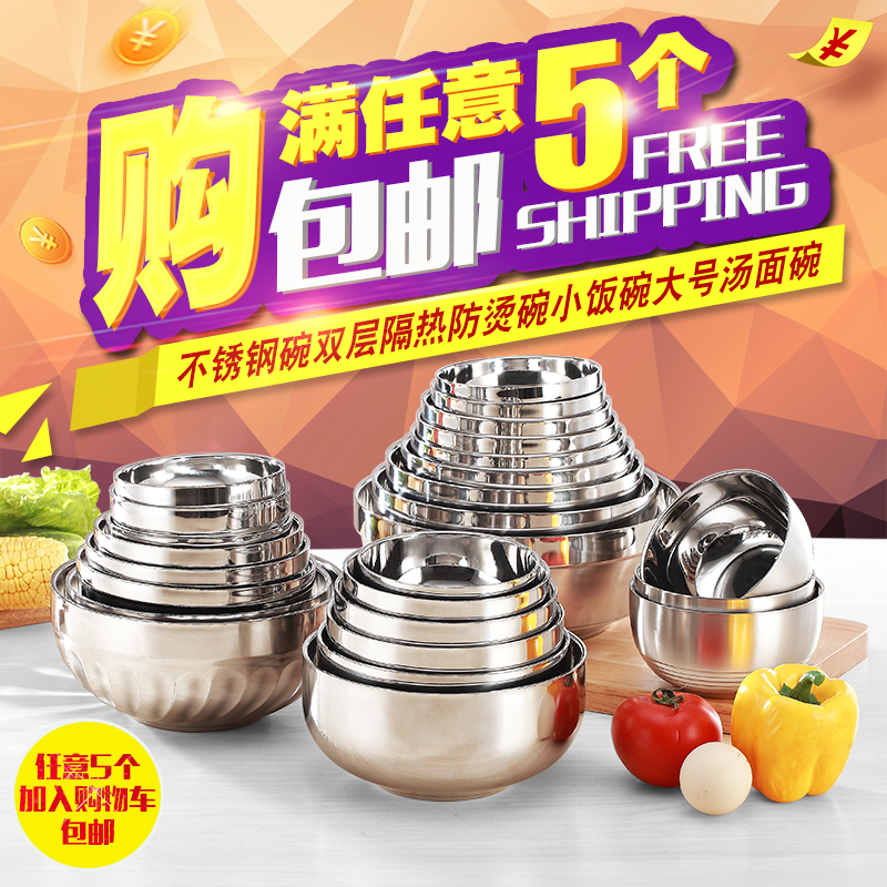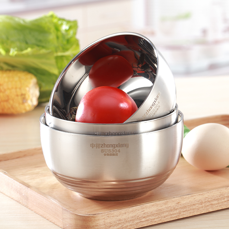 Double-layer stainless steel bowl household adult meal bowl single small bowl big soup bowl restaurant canteen rice bowl filled noodle bowl