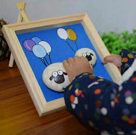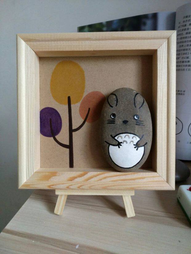 Pine Wood Sheng Stone drawing frame Sticky Goose Pebble Blank No Sign Frames frame Diy stone painted frames