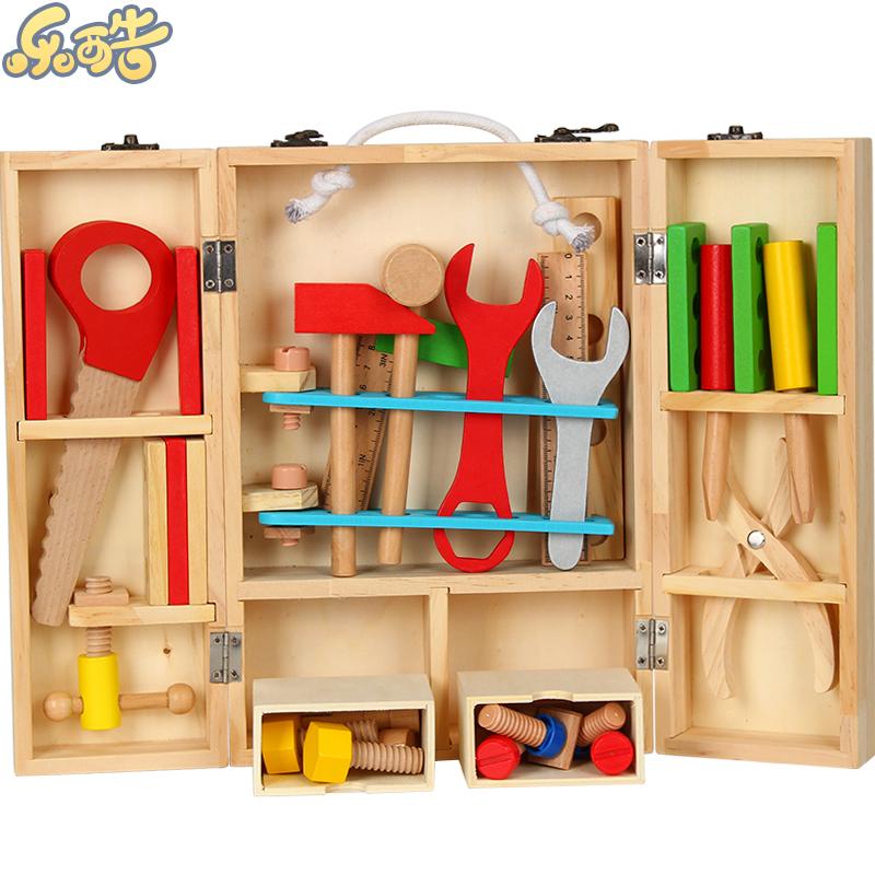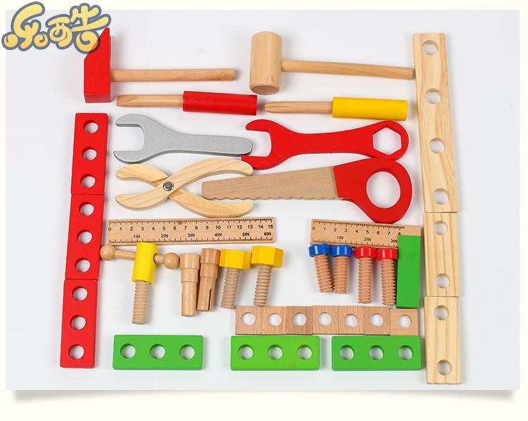 Kids Wooden Toolbox Boys Disassembly Nut Combination Toy Wooden Hammer Pliers Teaching Aids Puzzle Game