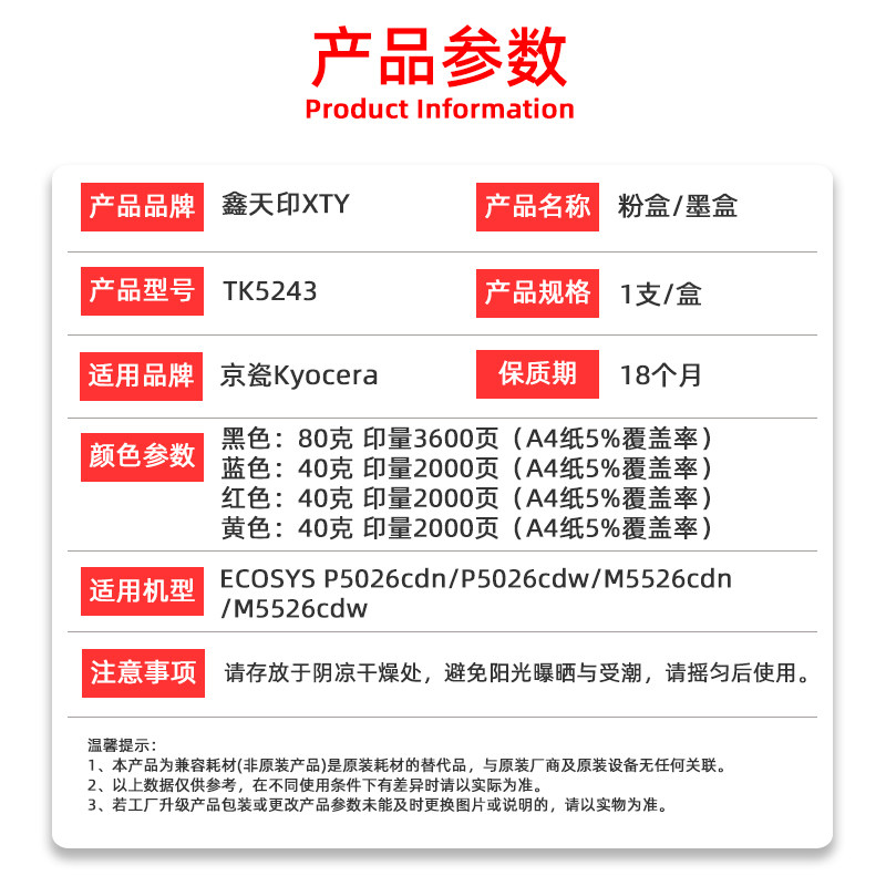 TK5243 chip (photographed 註 color) bottled powder 50g self-added powder (shot ready註 color) powder box (without chip to take 註-color) powder box (with chip to 註 color)