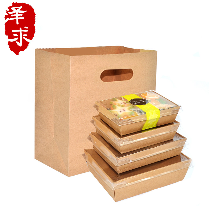 Disposable meal kit environmentally friendly degradable kraft paper with cover salad sushi box delivered with a simple meal kit