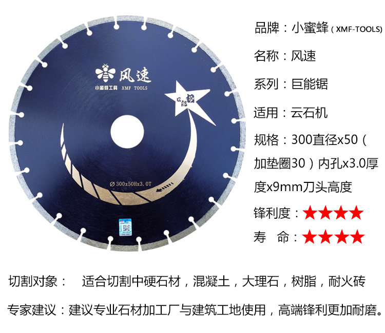 Small bee wind speed giant energy saw 300mm diamond saw blade marble cutting sheet stone slotted sheet cloud stone sheet