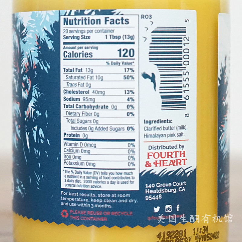 Ketogenic Bulletproof Coffee 4th Heart Ghee Butter Grass-Fed Creamy Salted Ghee 255g